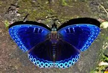 蓝闪蝶:又名蓝摩尔福蝶,是蛱蝶科闪蝶属中最大的一个物种,是一种热带蝴蝶,共有15个亚种。科名来自希腊词“μορφώ”,是希腊神话中爱与美的女神阿芙洛狄蒂的称号,意味着美丽、美观。蓝色的翅膀十分绚丽,…全部>>