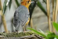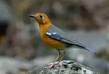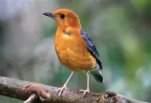 橙头地鸫是鸫科、地鸫属中型鸟类,体长18-22厘米。整个头、颈和下体橙栗色,其余上体包括两翅和尾蓝灰色或橄榄灰色,翅上多具白色翅斑。虹膜褐色或棕褐色,嘴黑褐色或黑色,脚橙黄色或肉黄色。特征极明显。…全部>>