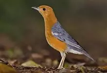 橙头地鸫是鸫科、地鸫属中型鸟类,体长18-22厘米。整个头、颈和下体橙栗色,其余上体包括两翅和尾蓝灰色或橄榄灰色,翅上多具白色翅斑。虹膜褐色或棕褐色,嘴黑褐色或黑色,脚橙黄色或肉黄色。特征极明显。…全部>>