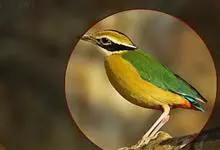 绿胸八色鸫:是雀形目八色鸫科的鸟类,共有12个亚种。体长为16-18厘米,体重65-69克。体型圆胖,尾短,腿长。头黑,上体绿色,两翼深色而具白色斑纹,头顶至后枕深褐,胸及腹部苹果绿,臀亮红。…全部>>