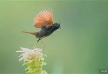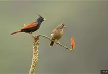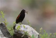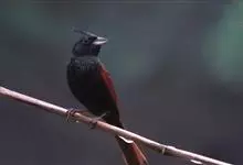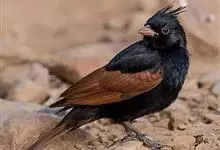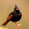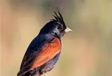 凤头鹀:属小型鸣禽,体重21-31克,体长134-175毫米。以头顶的细长羽冠为特征,雄鸟全身几乎均为黑色具蓝色光泽,两翅和尾以及尾上覆羽栗红色。雌鸟具短的褐色羽冠,上体暗橄榄褐色,…全部>>