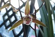 莲瓣兰是兰科、兰属植物。莲瓣兰为细长的线形,叶片质地较软,稍革质化,弓形弯垂,长35-60厘米,宽0.4-0.6厘米。叶基部有稍膨大的假鳞茎可储存水分和养分,根为圆柱状肉质根,直径0.5-1厘米,…全部>>