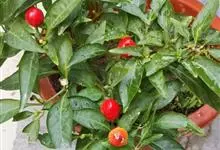 珊瑚樱是茄科茄属植物。株高达2米;植株无毛;叶窄长圆形或披针形,长1-6厘米,基部窄楔形下延,全缘或波状,侧脉4-7对;叶柄长2-5毫米;花单生,稀双生或成短总状花序与叶对生或腋外生,…全部>>