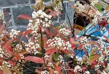 火棘 H. L. Li)是蔷薇科火棘属常绿灌木,老枝呈暗褐色;叶片呈倒卵形,边缘有钝锯齿,齿尖向内弯,两面皆无毛;叶柄短,无毛或嫩时有柔毛;花序是复伞房状,花瓣呈白色近圆形;果球近圆形,…全部>>