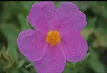 岩蔷薇是半日花科岩蔷薇属植物,多年生直立亚灌木,高约1.5-2.5米,全体具胶黏腺体。枝条褐色,侧枝分为生长枝和结果枝。单叶对生,披针形至线状披针形,长5-8厘米,宽0.5-1.5厘米。…全部>>