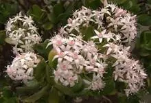 燕子掌 Druce),景天科青锁龙属直立灌木,茎粗壮,多分枝,灰绿色,有老树皮剥落留下的水平棕色条纹;叶具短柄,绿色,无毛,通常具红色边缘,倒卵形;花冠呈星状,…全部>>