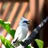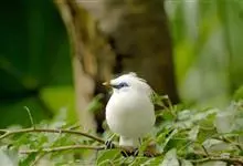 长冠八哥:是一种大型椋鸟,体长约25厘米,雌雄相似,外形俊朗,羽冠发达,眼睛四周和面部裸出,裸露部分为蓝色,全身羽毛纯白色,尾部和翼端的边缘呈黑色,脚灰色。全身白色,具较长冠羽,…全部>>