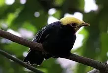 金冠树八哥为椋鸟科树八哥属的鸟类。体长约23厘米,闪辉黑色。特征为具翼斑及颏黄色,脸颊裸露皮肤粉黄色。分布于印度、缅甸、泰国以及中国大陆的云南、广东等地。…全部>>