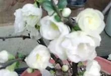 贴梗海棠 Nakai)是蔷薇科、木瓜海棠属植物。落叶灌木,高达2米,枝条直立开展,有刺。叶片卵形至椭圆形,稀长椭圆形,长3-9厘米,宽1.5-5厘米。花先叶开放,3-5朵簇生于二年生老枝上。…全部>>