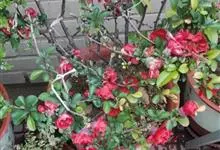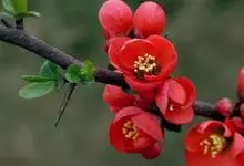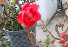 贴梗海棠Nakai)是蔷薇科、木瓜海棠属植物。落叶灌木,高达2米,枝条直立开展,有刺。叶片卵形至椭圆形,稀长椭圆形,长3-9厘米,宽1.5-5厘米。花先叶开放,3-5朵簇生于二年生老枝上。…全部>>