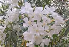 白花夹竹桃是夹竹桃科、夹竹桃属植物夹竹桃的栽培品种。常绿直立大灌木,枝条灰绿色;嫩枝条具稜,被微毛,老时毛脱落。叶3-4枚轮生,下枝为对生,叶面深绿,叶背浅绿色;侧脉纤细平行与中脉成直角;叶柄扁平,…全部>>