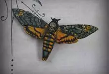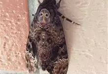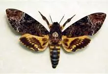 鬼脸天蛾,是鳞翅目天蛾科面形天蛾属动物。成虫翅展100~125毫米,体黑褐色;胸背有骷髅形斑纹;卵圆球形,直径约2毫米,淡黄绿色,表面光滑;老熟幼虫体长70~90毫米,蛹体长约56毫米;前翅为褐色,…全部>>