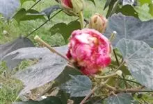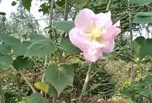 木芙蓉,锦葵科木槿属落叶灌木或小乔木。小枝上有细绒毛;叶片为卵状心形,托叶为披针形,常早落;花单生,花萼为钟形,花冠初为白色或淡红色,后逐渐变为深红色;果实为扁球形,有淡黄色的毛附着。花期8到10月。…全部>>