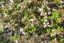 大花六道木,忍冬科六道木属半常绿矮生灌木。其幼枝为红褐色,有短柔毛;叶片倒卵形为墨绿色,有光泽;花粉钟形为白色;圆锥花序,开花繁茂;花期长,5~11月持续开花。…全部>>