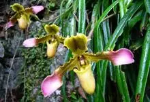 兜兰是兰科兜兰属的多年生草本植物。根茎粗状,直径3~4毫米,有很多须根;叶基生,叶片肉质增厚,排成紧密2列,叶片呈长圆形,表面有极短柔毛;总状花序,粉白色,花葶直立或倾斜,深绿色或褐色,花瓣大,呈唇形,…全部>>