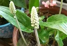 阔叶油点百合又名非洲玉簪,是天门冬科绵枣儿亚科的多年生草本植物。叶片浅绿,全部丛生,上面散布深色的斑点。原产于非洲,喜半荫、排水良好、温暖的环境,稍耐低温。油点百合因其叶片往往有各种斑点,花白色带绿色,…全部>>
