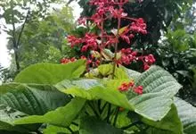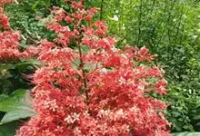 赪桐 Sweet)是唇形科、大青属灌木,高1-4米,叶片圆心形,顶端尖或渐尖,基部心形,边缘有疏短尖齿,表面疏生伏毛,二歧聚伞花序组成顶生,大而开展的圆锥花序,花序的最后侧枝呈总状花序,花萼红色,…全部>>