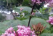 臭牡丹,唇形科大青属灌木,植株有臭味;花序轴、叶柄密被褐色、黄褐色或紫色脱落性的柔毛;小枝近圆形,皮孔显著;叶片纸质,宽卵形或卵形;伞房状聚伞花序顶生,密集;花冠淡红色、红色或紫红色;核果近球形,…全部>>
