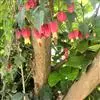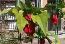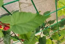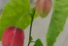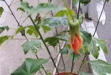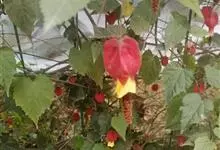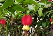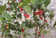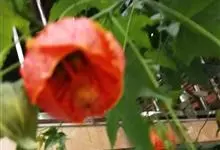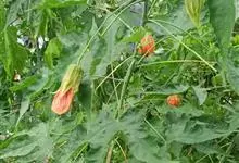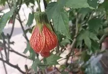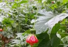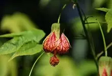 红萼苘麻是锦葵科、苘麻属常绿软木质灌木,叶绿色,长5-10厘米,心形,叶端尖,叶缘有钝锯齿,有时分裂,有细细的叶柄;叶互生,掌状叶脉;花单生于叶腋,具长梗,下垂;花萼红色,半套着大约4厘米长的花瓣,…全部>>