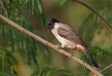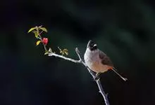 白颊鹎是雀形目鹎科鸟类。体长19—21厘米。雌雄相似。成鸟头部深灰色具一显著的羽冠,白色脸侧具一黑色点状斑纹。颏部、喉部黑色;胸部、腹部、两胁近白色;背部、两翼近灰色;尾下覆羽黄色,尾羽灰色,…全部>>
