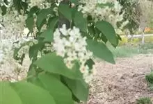 稠李是蔷薇科、李属的乔木。株高达15米;幼枝被绒毛,冬芽无毛或鳞片边缘有睫毛;叶椭圆形、长圆形或长圆状倒卵形,基部圆或宽楔形,有不规则锐锯齿,花序梗和花梗无毛,萼筒钟状,萼片三角状卵形,花瓣白色,…全部>>