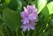 凤眼莲 Solms),是雨久花科凤眼莲属的浮水草本植物。凤眼莲茎极短,具长匍匐枝;叶基生,莲座状排列,宽卵形或宽菱形,先端钝圆或微尖,基部宽楔形或幼时浅心形;花葶具棱,穗状花序;花冠近两侧对称,…全部>>