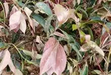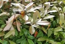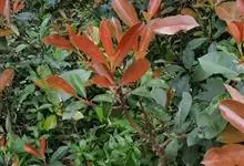 红叶石楠 是蔷薇科,石楠属杂交种,为常绿小乔木或灌木,乔木高可达5米、灌木高可达2米。叶片革质,长圆形至倒卵状、披针形,叶端渐尖,叶基楔形,叶缘有带腺的锯齿,花多而密,复伞房花序,花白色,梨果黄红色,…全部>>