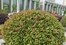 石楠 Kalkman),是蔷薇科石楠属的常绿乔木,高5~12米,株型紧凑,树冠圆球形。树枝为褐灰色;鳞片为褐色,没有毛;叶片革质,长椭圆至侧卵状椭圆形,有锯齿,新叶红色光亮。复伞房花序,白色小花,…全部>>