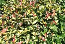 红叶石楠 是蔷薇科,石楠属杂交种,为常绿小乔木或灌木,乔木高可达5米、灌木高可达2米。叶片革质,长圆形至倒卵状、披针形,叶端渐尖,叶基楔形,叶缘有带腺的锯齿,花多而密,复伞房花序,花白色,梨果黄红色,…全部>>