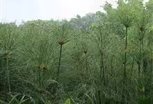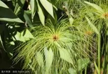 纸莎草是莎草科、莎草属的植物,具有粗壮的根状茎,高达2-3米,茎秆簇生,粗壮,直立,钝三棱形。叶退化呈鞘状,茎秆顶端着生总苞片,呈伞状簇生,总苞片叶状,披针形,顶生花序伞梗极多,细长下垂。瘦果灰褐色,…全部>>