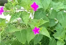 即紫茉莉,英文名:Four-o'clock,Marvel of Peru,为紫茉莉科、紫茉莉属多年生草本植物,一年生栽培。株高50~80cm。根粗壮,茎多分枝而散生。叶对生,卵形或心脏形。花数朵簇生…全部>>