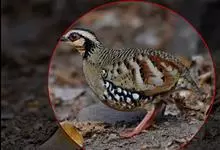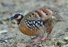 褐胸山鹧鸪:雄鸟体长22厘米,体重310克;雌鸟体长23厘米,体重220-275克。前额皮黄白色,头顶橄榄褐色。眼部的裸皮鲜红色,有一条宽阔的皮黄白色眉纹一直延伸到颈的侧部。上体亮橄榄褐色,具黑色横斑。…全部>>