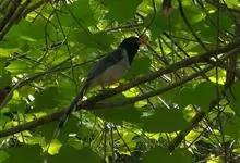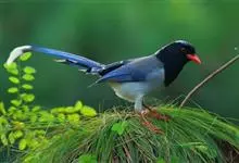 红嘴蓝鹊,别名山鹊、长尾鹊,是鸦科蓝鹊属的一种观赏性较强的大型鸣禽。该物种为体长54~65cm,头、颈、喉和胸黑色,头顶至后颈有一块白色至淡蓝白色或紫灰色块斑,其余上体紫蓝灰色或淡蓝灰褐色。尾长呈凸状,…全部>>