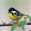 黄腹山雀是雀形目山雀科山雀属鸟类。虹膜褐色或暗褐色;嘴蓝黑色或灰蓝黑色;头、喉胸斑黑色,颊斑、颈后斑白色;上体蓝灰色,腰银白色;翼具两排白色点斑;下胸、腹鲜黄色;尾黑色,…全部>>