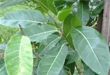 印度榕:乔木,高达20-30米,胸径25-40厘米;树皮灰白色,平滑。小枝粗壮。叶厚革质,长圆形至椭圆形,全缘,表面深绿色,光亮,背面浅绿色,侧脉多,不明显,平行展出;榕果成对生于已落叶枝的叶腋,卵…全部>>