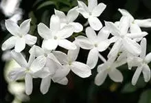 素馨花,木犀科素馨属多年生的攀援灌木植物。攀援灌木,小枝圆柱形,具棱或沟;叶对生,叶轴常具窄翼,小叶片卵形或长卵形;聚伞花序顶生或腋生,花序梗长,苞片线形,花萼无毛,裂片锥状线形,花冠白色,…全部>>