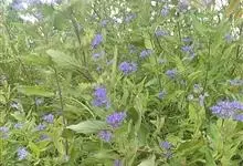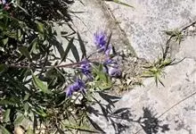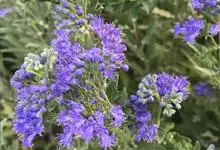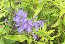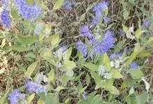 蒙古莸:为唇形科莸属落叶小灌木。常自基部即分枝,嫩枝紫褐色,圆柱形,有毛,老枝毛渐脱落。叶片厚纸质,线状披针形或线状长圆形,背面密生灰白色绒毛。聚伞花序腋生,无苞片和小苞片,花萼钟状,花冠蓝紫色。…全部>>