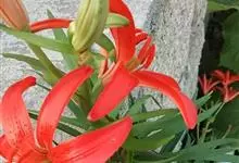 山丹是百合科百合属的多年生草本植物。鳞茎卵形或圆锥形,鳞片长圆形或长卵形,白色;叶散生茎中部,线形,边缘有乳头状突起;花单生或数朵成总状花序,花鲜红色,常无斑点,花被片反卷,…全部>>