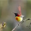 黄腹花蜜鸟是雀形目太阳鸟科花蜜鸟属鸟类。体型较小、喙略短而弯、腹部黄色。雄鸟繁殖季节颏及胸黑紫色并泛金属光泽,具有绯红色及灰色胸带,将上腹部黑色斑与前胸隔开,肩斑为橙黄色丝质羽,上体橄榄绿色,…全部>>