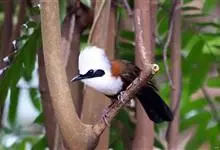 白冠噪鹛是画眉科噪鹛属的鸟类。是中型鸟类,体长28-32厘米。常见于常绿阔叶林、杂有竹丛的树林以及林下灌丛。该物种的模式产地在喜马拉雅山脉西部。主要以金龟甲、步行虫、甲虫、蝉、鳞翅目幼虫等昆虫为食,…全部>>