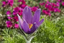 白头翁 Regel),是毛莨科白头翁属的一种植物,又名将军草、毫笔花、老冠花等。白头翁根状茎粗壮,具直根数条。通常在开花时刚刚生出基生叶,有长柄,叶片宽卵形。花葶1-,有柔毛,花直立,萼片蓝紫色,…全部>>