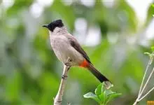 白喉红臀鹎是雀形目鹎科鹎属鸟类,又称红臀鹎、黑头公。额、头顶、枕、眼周和颊的前部黑色,具金属光泽;颊的后部和耳羽灰白色;后颈、颈侧和上体灰褐色,各羽均具浅色羽缘;腰羽及尾上覆羽灰褐色;颏与嘴角黑色,…全部>>