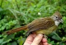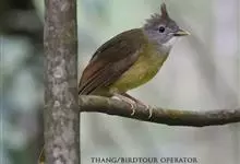 白喉冠鹎:体长20-25厘米。头顶红褐色,有长而细的羽冠、红褐色,头侧灰色。上体橄榄绿黄色,飞羽暗褐色,外翈茶黄色,尾下覆羽皮黄色。…全部>>