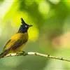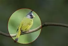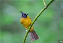 黑冠黄鹎:体长18-21厘米,是一种中等体型偏黄色鹎。整个头、颈、颏、喉黑色,头顶有显著直立的羽冠,黑色,上体褐橄榄黄绿色,下体橄榄黄色。虹膜偏红;嘴及脚黑色。…全部>>