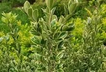 金边黄杨是卫矛科卫矛属的常绿灌木或小乔木,金边黄杨小枝略为四棱形,枝叶密生;单叶对生,倒卵形或椭圆形,边缘具钝齿,表面深绿色,有光泽;聚伞花序腋生,具长梗,花绿白色;蒴果球形,淡红色;花期5~6月。…全部>>