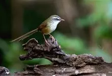 黑喉山鹪莺:体长16厘米,是一种长尾的褐色鹪莺。具明显的白色眉纹及形长的尾。特征为胸具黑色纵纹。上体褐色,两胁黄褐,腹部皮黄;脸颊灰,具明显的白色眉纹及形长的尾。无下髭纹,下体少黑色。虹膜浅褐色,…全部>>