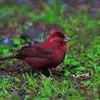 酒红朱雀小型鸟类,体长13~15厘米。雄鸟通体深红色,头部深朱红或棕红色,下背和腰玫瑰红色,眉纹粉红色而具丝绢光泽。两翅和尾黑褐或灰褐色、具暗红色狭缘,内侧两枚三级飞羽具淡粉红色先端。…全部>>