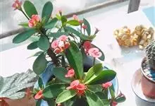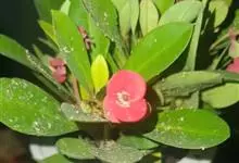 铁海棠为大戟科大戟属蔓生灌木植物;茎多分枝,具纵棱,呈旋转状;叶互生,通常集中于嫩枝上;每个花序基部边缘具微小的红色尖头;苞叶先端圆且具小尖头,无柄,上面鲜红色,下面淡红色;苞片丝状;子房光滑无毛,…全部>>