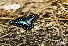 青带凤蝶Graphium sarpedon ,又名青凤蝶,是最普遍的中型凤蝶,飞行速度很快。青带凤蝶的翅膀中央有许多浅蓝色的斑点,很整齐地排列成一条直线。这些斑点由上而下逐渐变大,就像一条青色的带子。全部>>