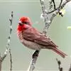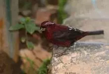 酒红朱雀小型鸟类,体长13~15厘米。雄鸟通体深红色,头部深朱红或棕红色,下背和腰玫瑰红色,眉纹粉红色而具丝绢光泽。两翅和尾黑褐或灰褐色、具暗红色狭缘,内侧两枚三级飞羽具淡粉红色先端。…全部>>
